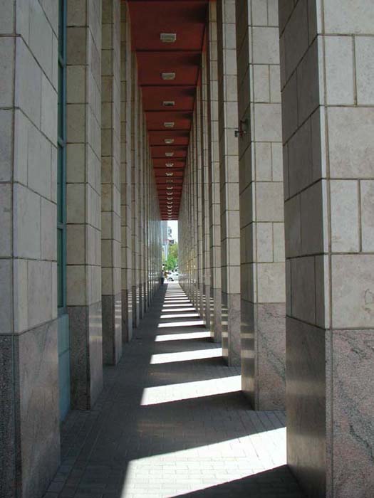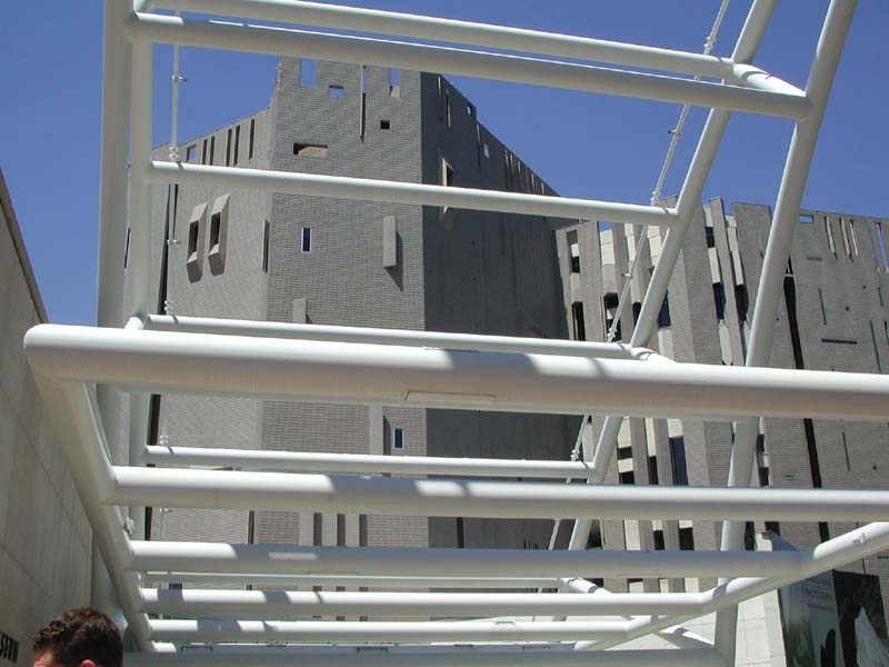 The entrance to the new library (itself rather offputting, but the white against the blue sky is nice)