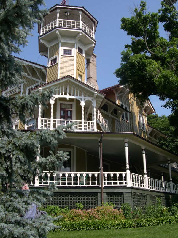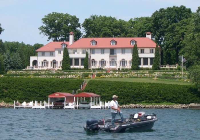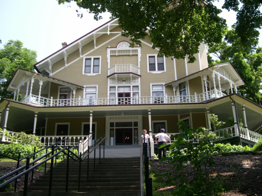 The house, built by the owner of theSeippe Brewery in Chicago, was called "Lorelei" until the First Word War made German namesunpopular. Thereafter it became Black Point, named for the black oaks that grew around thehouse but are no longer to be seen. It's perched on a hilltop and almost invisible from thelake. The house was donated to the State of Wisconsin 11 years ago by Bill Peterson, a grandson of the original owner; it took 10 years to get the museum open because neighbors opposed the invasion of their sanctuary. So access is limited to the boat dock and restrictions are considerable. Still, worth the trip.