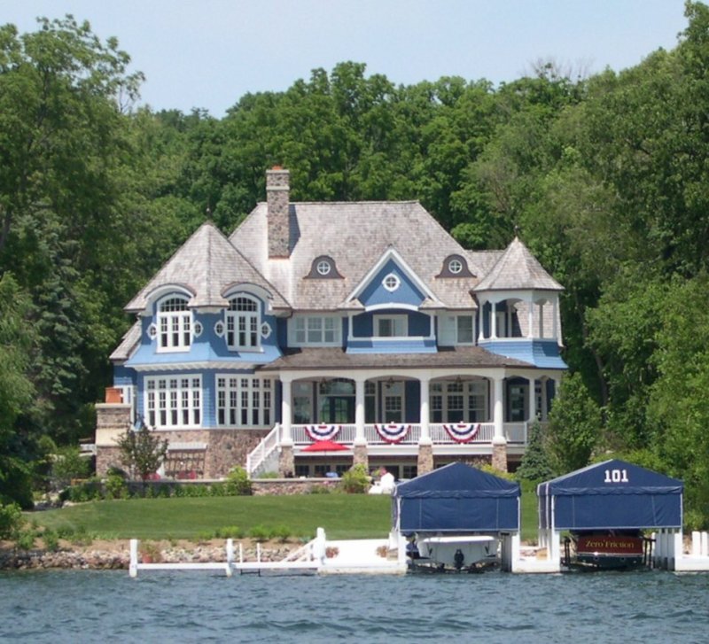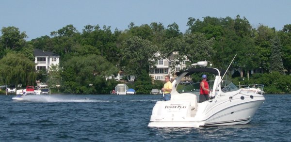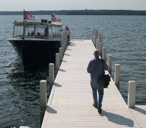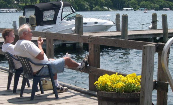 ![]() A perfect day for sitting on the dock | Captain, my captain: this was Zak, at 20 a very impressive guide and pilot. It seemed that everymassive mansion around the lake was built by some tycoon associated with a brand name--American Can, Nabisco, Rock Island Railroad, you name it. Zak knew themall. |