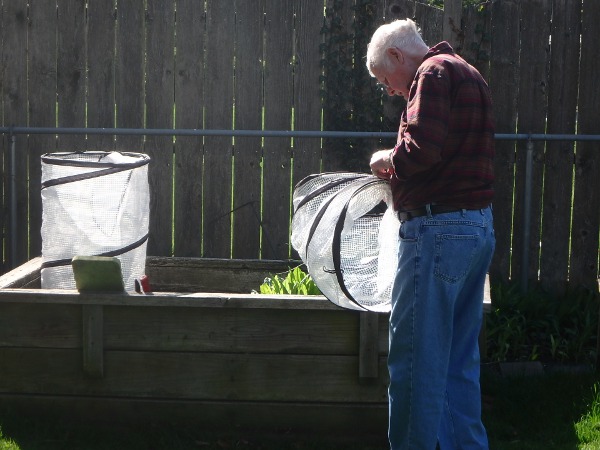 Setting up the tomato cages Tuesday, May 8, 2018