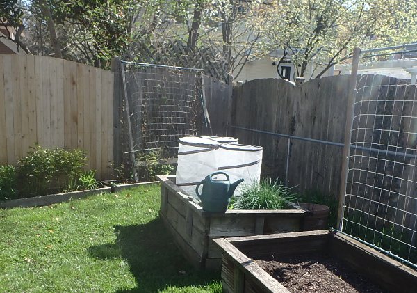 this link to pictures from early April 2017. We have pictures there going back to 1985, the year we moved into the property. The beds as they look now George built in 2006. In 2017 we replaced one, and we anticipate replacing another one or two in the coming year and adding a new one along the fence opposite the five beds we now have.