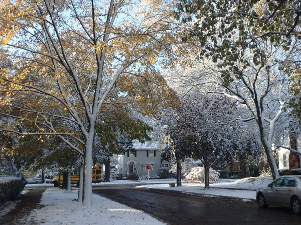 Prairie Ave. Work goes on Park at Isabella looked very nice Just last week the tree was gloriously orange and red