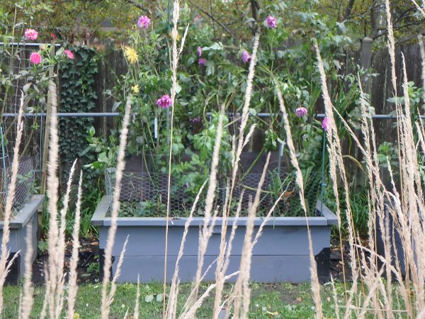 The change quickly showed in the dahlias. Below, pictures from October 16 left, October 27, right