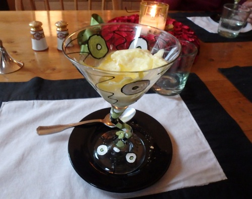 tilapia, mashed potatoes, broccoli; mango mousse