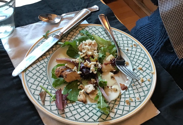 Our menu 12/23: pear and blue cheese salad;