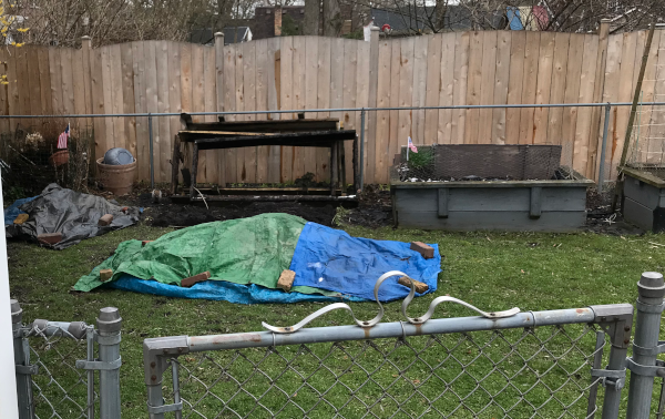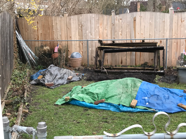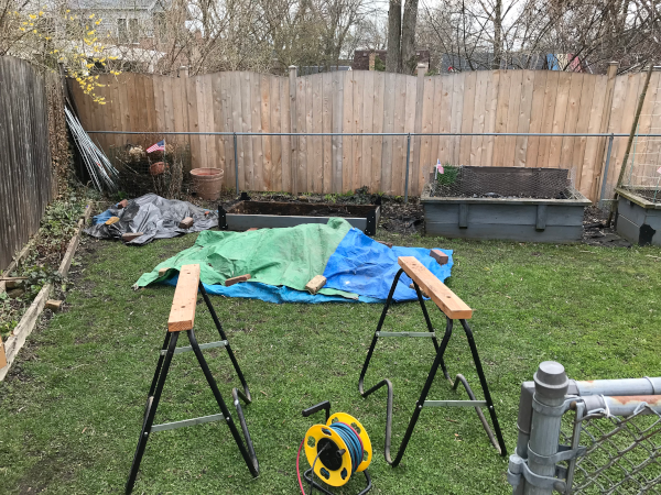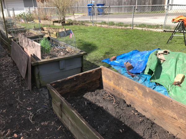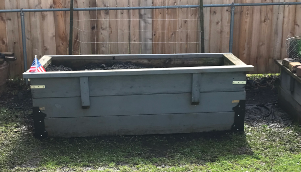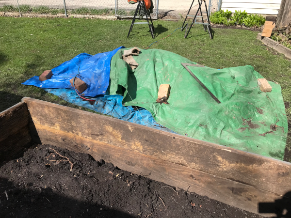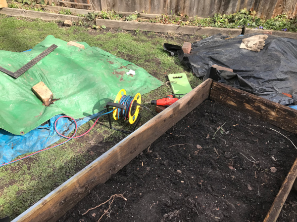 Piles of dirt to move out and back in Corner braces attached, below. The second layer attacked with corner bracket, left edge