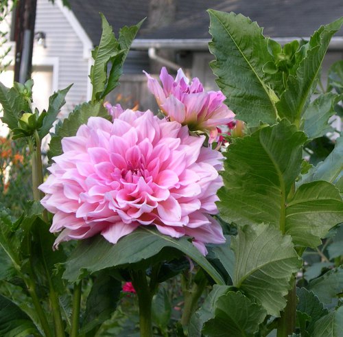 In the back, a bumper crop of dahlias, including some very big ones