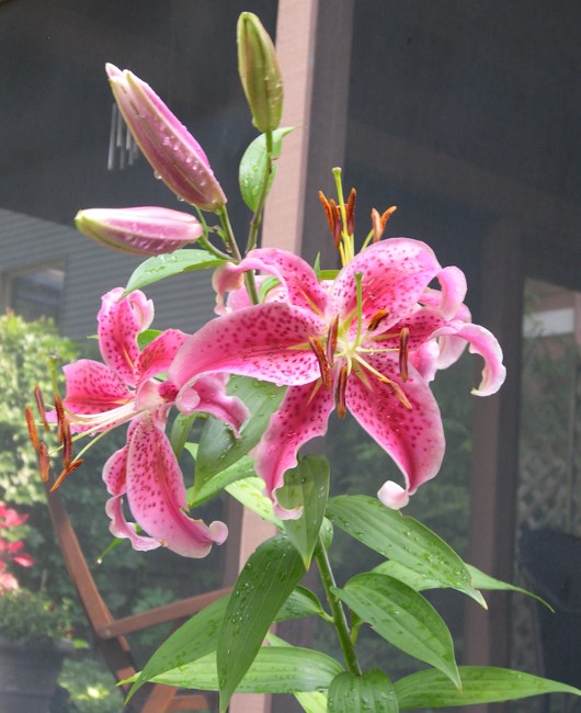 Up the walk, up the stairs. George on lily guard duty.