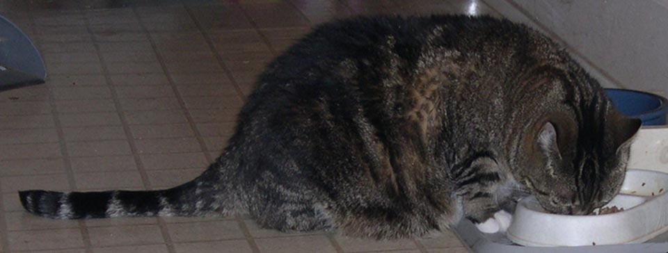 Charlotte, waiting for her supper and Emily enjoying hers.