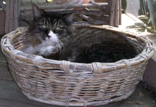 Masetto in Charlotte's basket Kitties around Prairie Ave.,