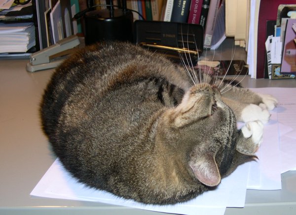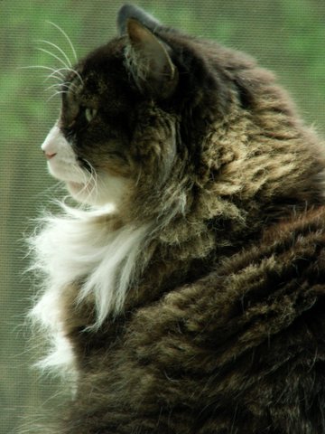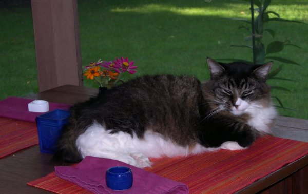 Right, getting his morning brushing, and below, settling in for his afternoon nap.